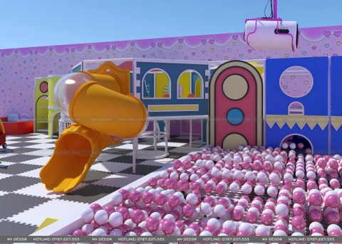 Khu vui chơi trẻ em được thiết kế với những gam màu sinh động. Ưu điểm của khu vui chơi là những món đồ chơi được nhập từ các thương hiệu nổi tiếng trên thế giới, bé có thể chơi nấu ăn, bán hàng với các bộ bếp của thương hiệu Step 2 từ USA hoặc nếu bé thích các loại xe chòi chân, thì các xe chòi chân của Little Tikes sẽ giúp bé có những giờ vui chơi thoải mái.