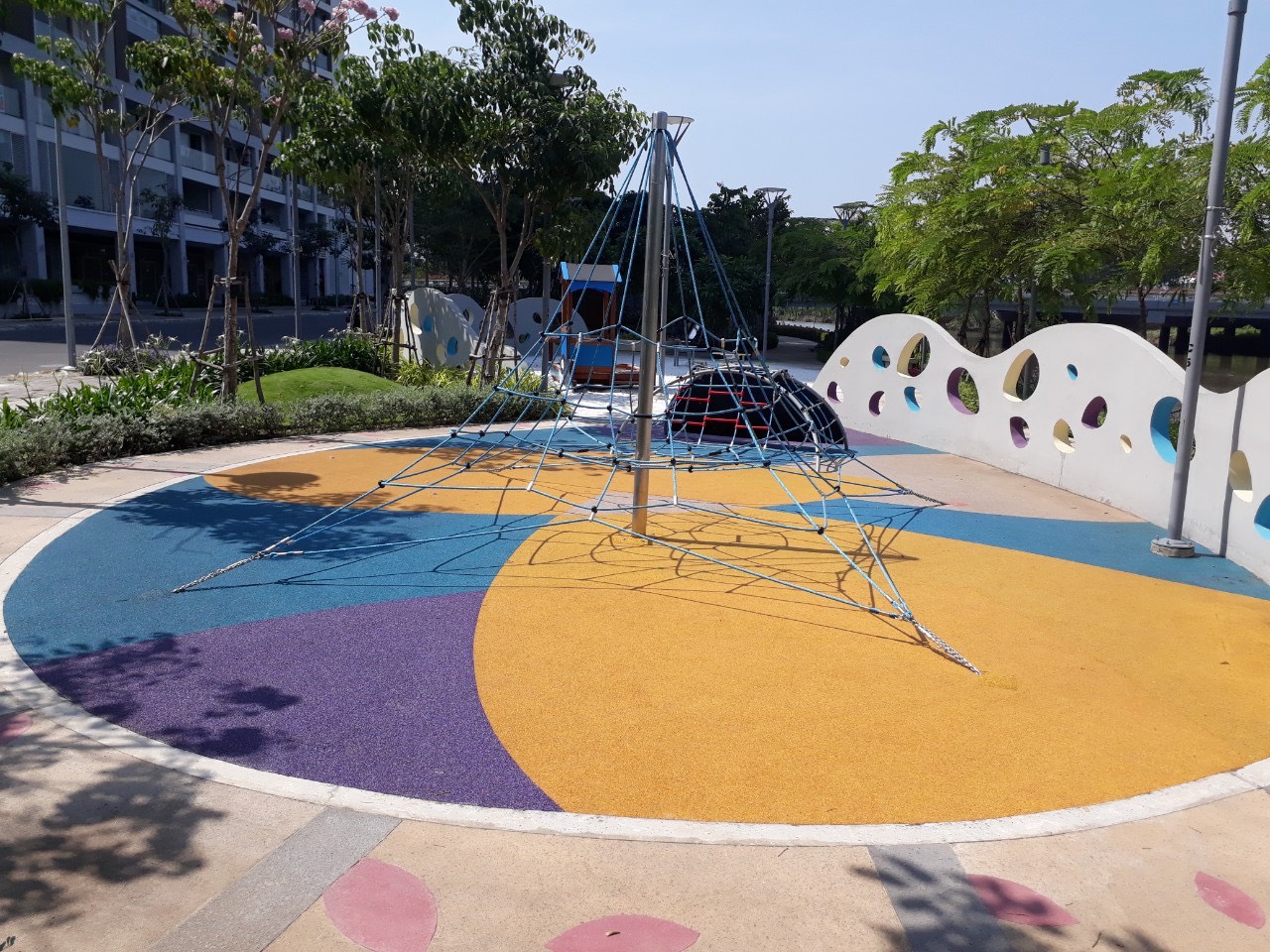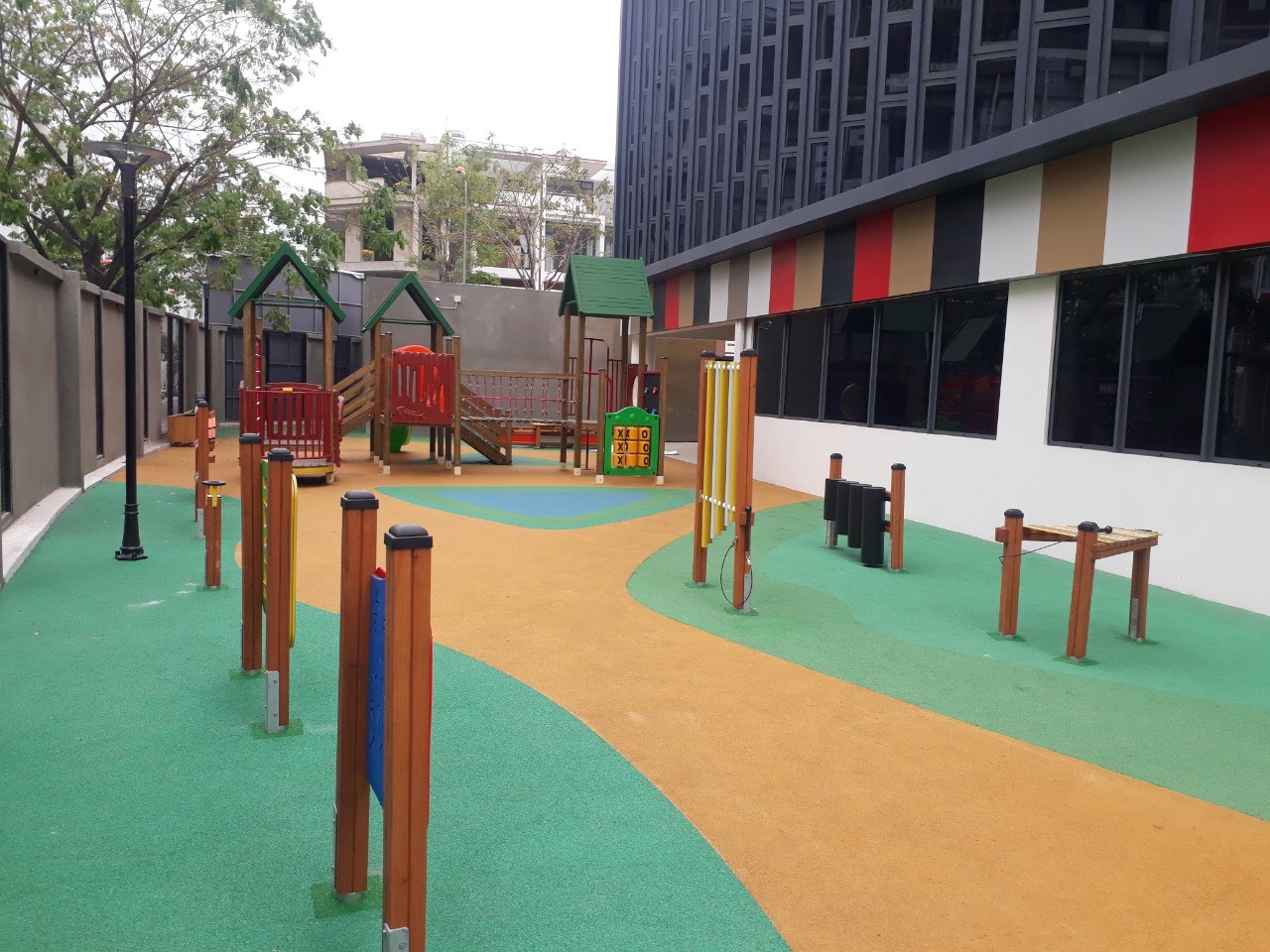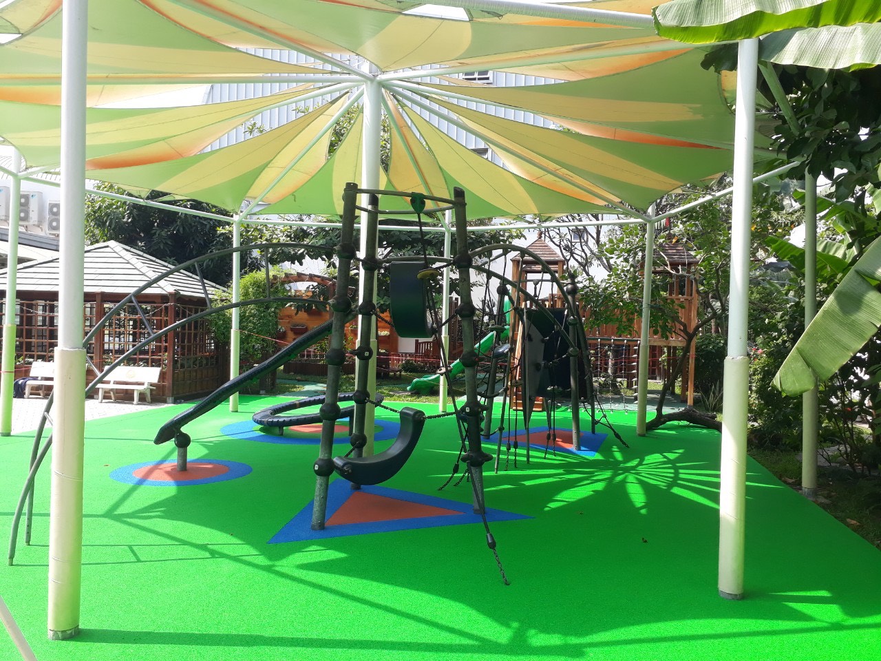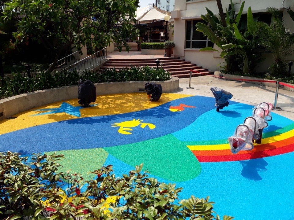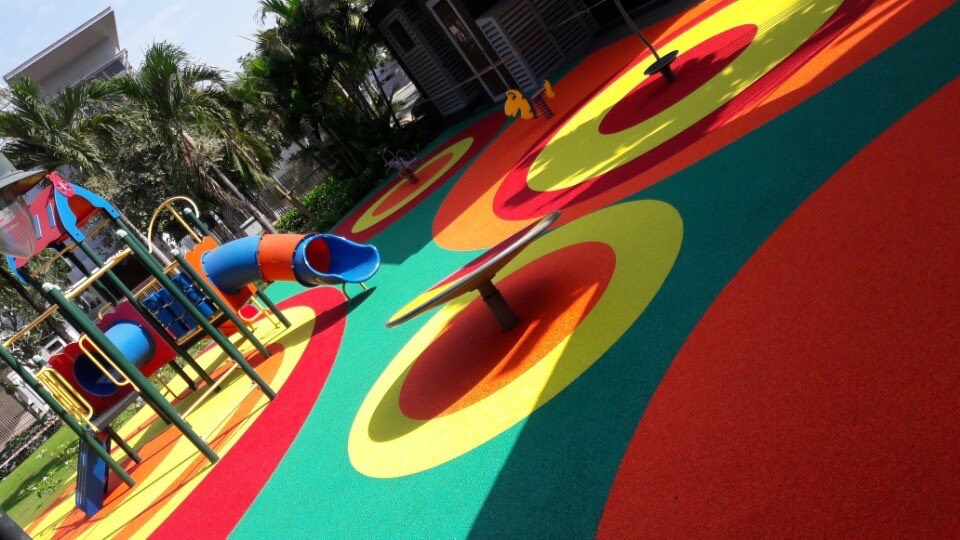 Thảm cao su EPDM sân chơi trẻ em được lắp đặt ngoài trời. Do vậy, thương xuyêt bị tác động mới mưa nắng. Chính vì vậy việc lựa chọn bột mầu sử dụng trong sản xuất hạt cao su EPDM là đặc biệt quan trọng: Để đảm bảo sự bền màu của hạt cao su khi chịu tác động của thời tiết, chúng tôi khuyên các bạn nền sử dụng hạt cao su EPDM được sản xuất bằng bột mầu vô cơ (Bột mầu Chrome oxit) hay tương đương.