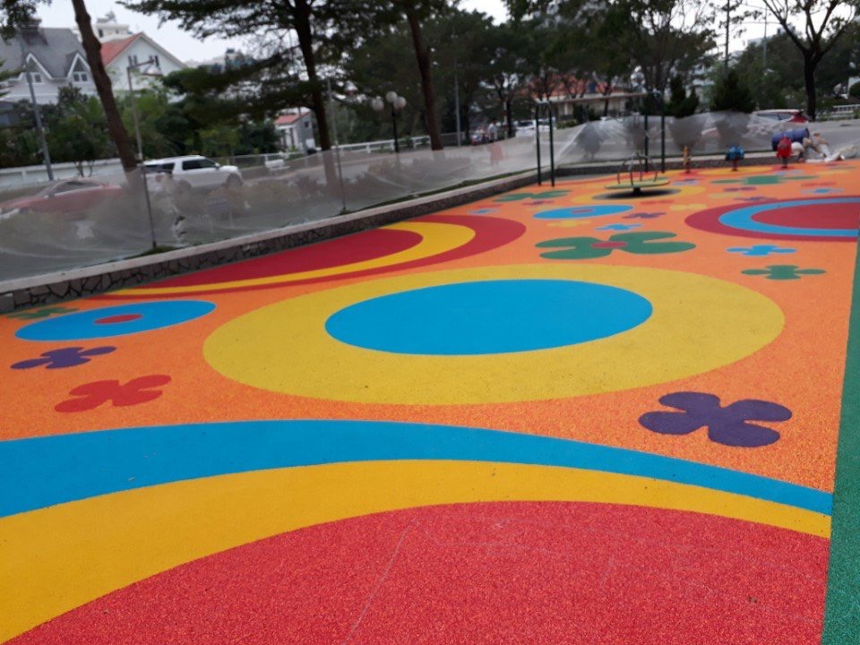 – Về Hạt cao su EPDM: Hạt được sử dụng làm lớp bề mặt nên chúng thường xuyên chịu ảnh hưởng của thời tiết cùng tác động của giầy dep. Bởi vì vậy, yêu cầu về chất lượng hạt cao su EPDM để thi công sân chơi trẻ em cũng đòi hỏi khả năng chống mài mòn, chống lão hóa cao, chống may mầu bề mặt tốt.